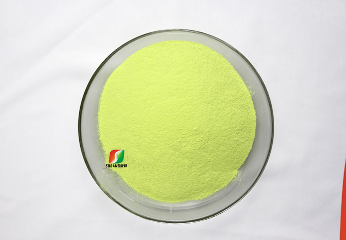 本品使用溫度常溫至280℃以內(nèi),可溶于80倍的軟水中,耐酸堿程度為pH=6~11,它可與陰離子表面活性劑或染料、非離子表面活性劑、雙氧水同浴使用。在同等用量的情況下白度比VBL、DMS高,而水溶性能與VBL和DMS相差無(wú)幾。與CBS-X相比,水溶性能稍差,但CBS-X可以隨水帶走,涂料干了容易遷移和泛黃,本品解決了在水性涂料、水性漆里熒光增白劑的耐溫性、耐候性、耐黃變、抗遷移性。