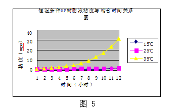 恒溫條件RF樹(shù)脂液粘度與縮合時(shí)間關(guān)系圖