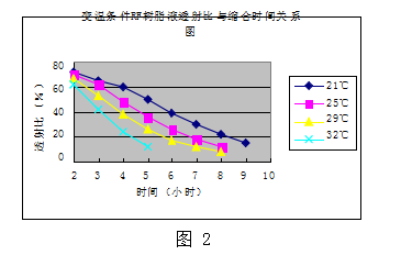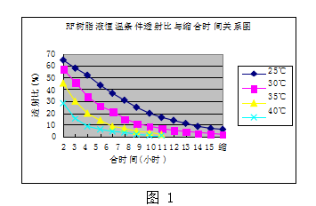 變溫條件RF樹(shù)脂液透射比與縮合時(shí)間關(guān)系圖
