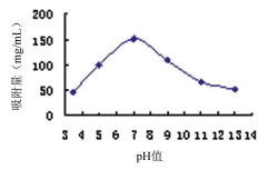 由圖4可以看出,在pH為7.0時(shí),吸附量**大。這跟那他霉素的穩(wěn)定性有一定關(guān)系,那他霉素在pH 3-9中具有活性,在pH 5-7范圍內(nèi)穩(wěn)定且活性**強(qiáng)。pH低于5, 那他霉素水解失去碳霉糖,并從四烯變?yōu)槲逑┙Y(jié)構(gòu),并引起那他霉素完全降解;pH高于9,那他霉素皂化降解。因此,那他霉素的**佳吸附pH為7.0。