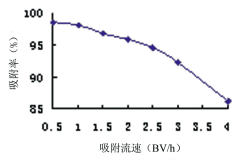 5    上樣液吸附流速對(duì)HZ816樹脂吸附性能的影響