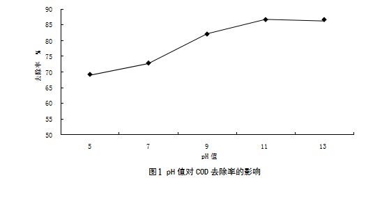 表1 pH值對CODcr去除率的影響